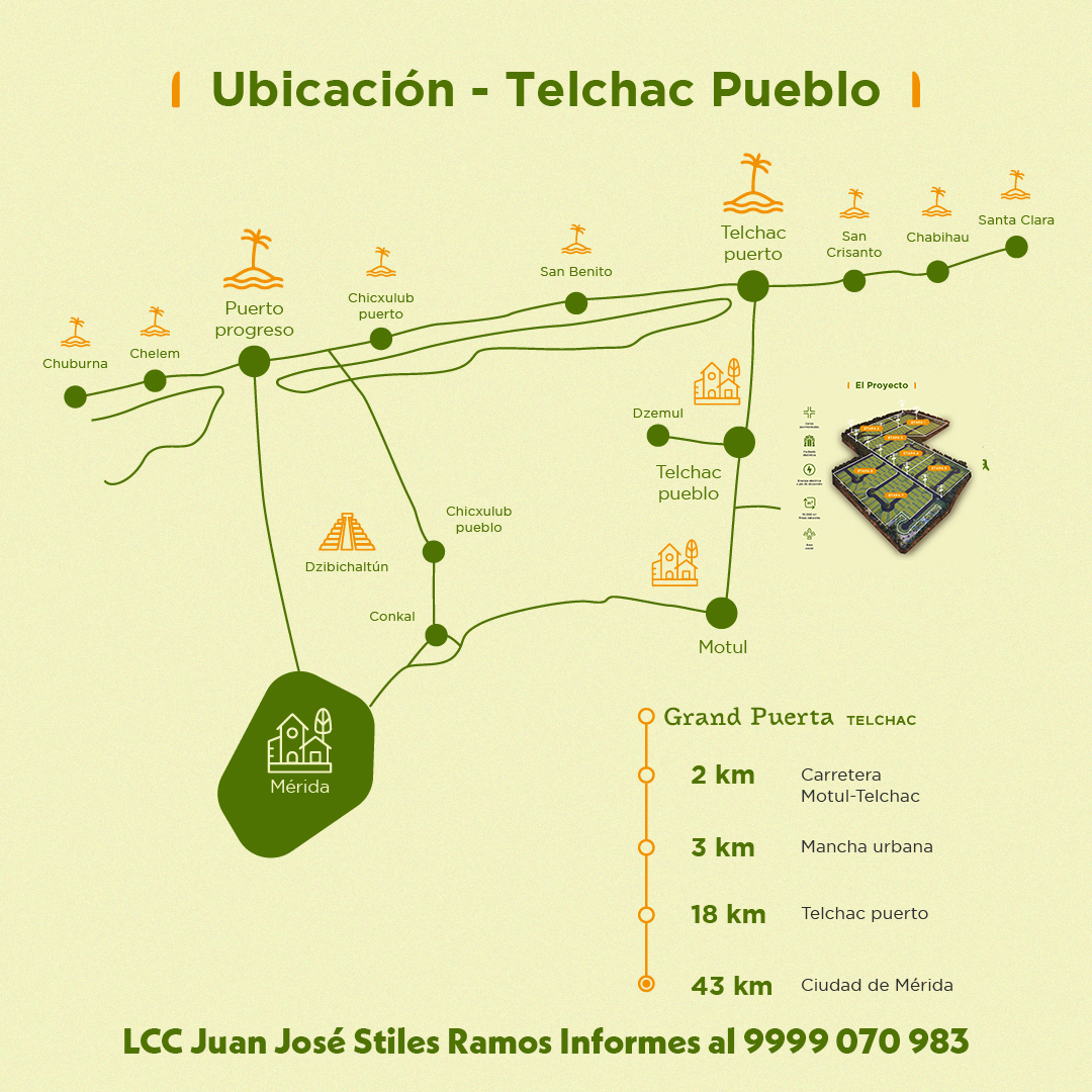 • Situado a 6 km de la mancha urbana de Telchac Pueblo (6 minutos).